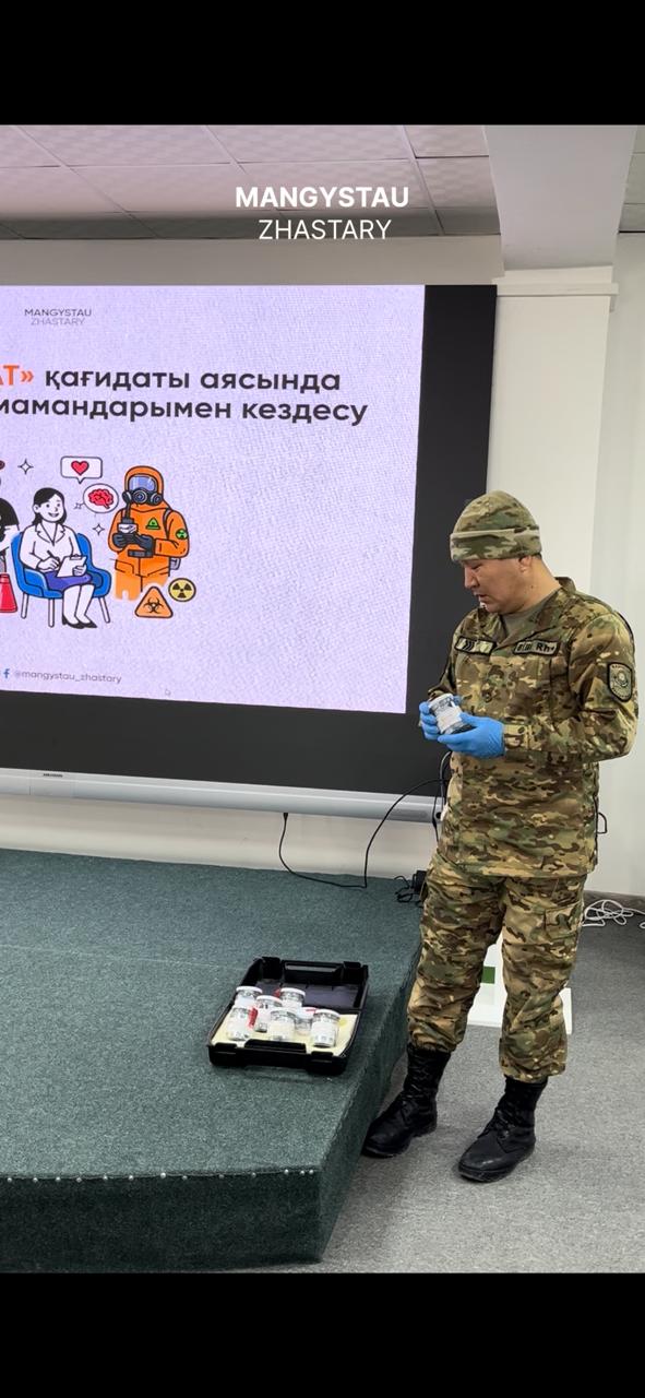 Кездесу барысында арнайы жасақ мамандары өз қызметтерінің ерекшеліктері, кинолог мамандығының қыр-сыры және қызметтік иттерді даярлау үдерісі туралы айтып берді. Жастар көкейлеріндегі сұрақтарын қойып, тұшымды жауаптар алды.