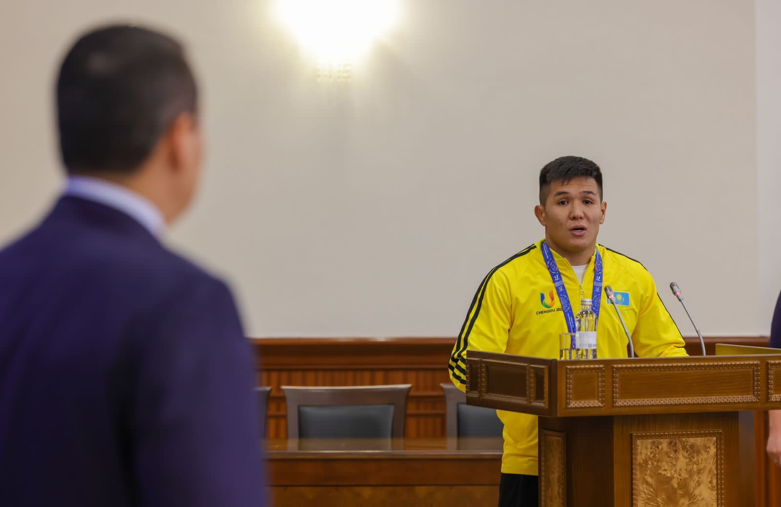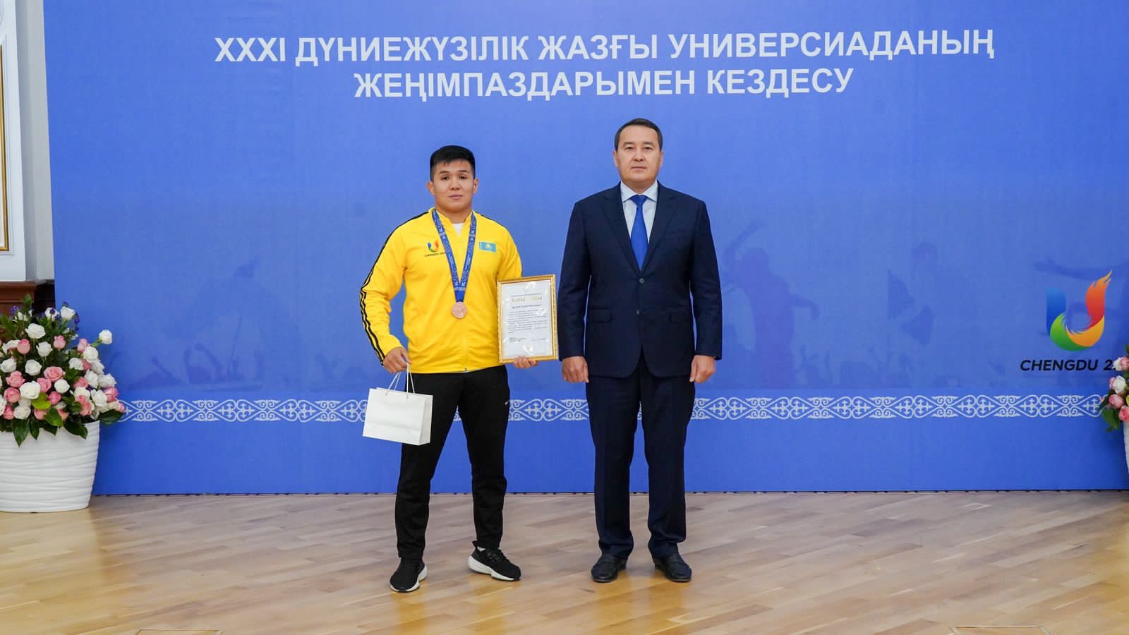 Әлихан Смайылов 28 шілде мен 8 тамыз аралығында Қытайдың Чэнду қаласында өткен ХХХІ Дүниежүзілік жазғы Универсиада жеңімпаздарымен кездесті.