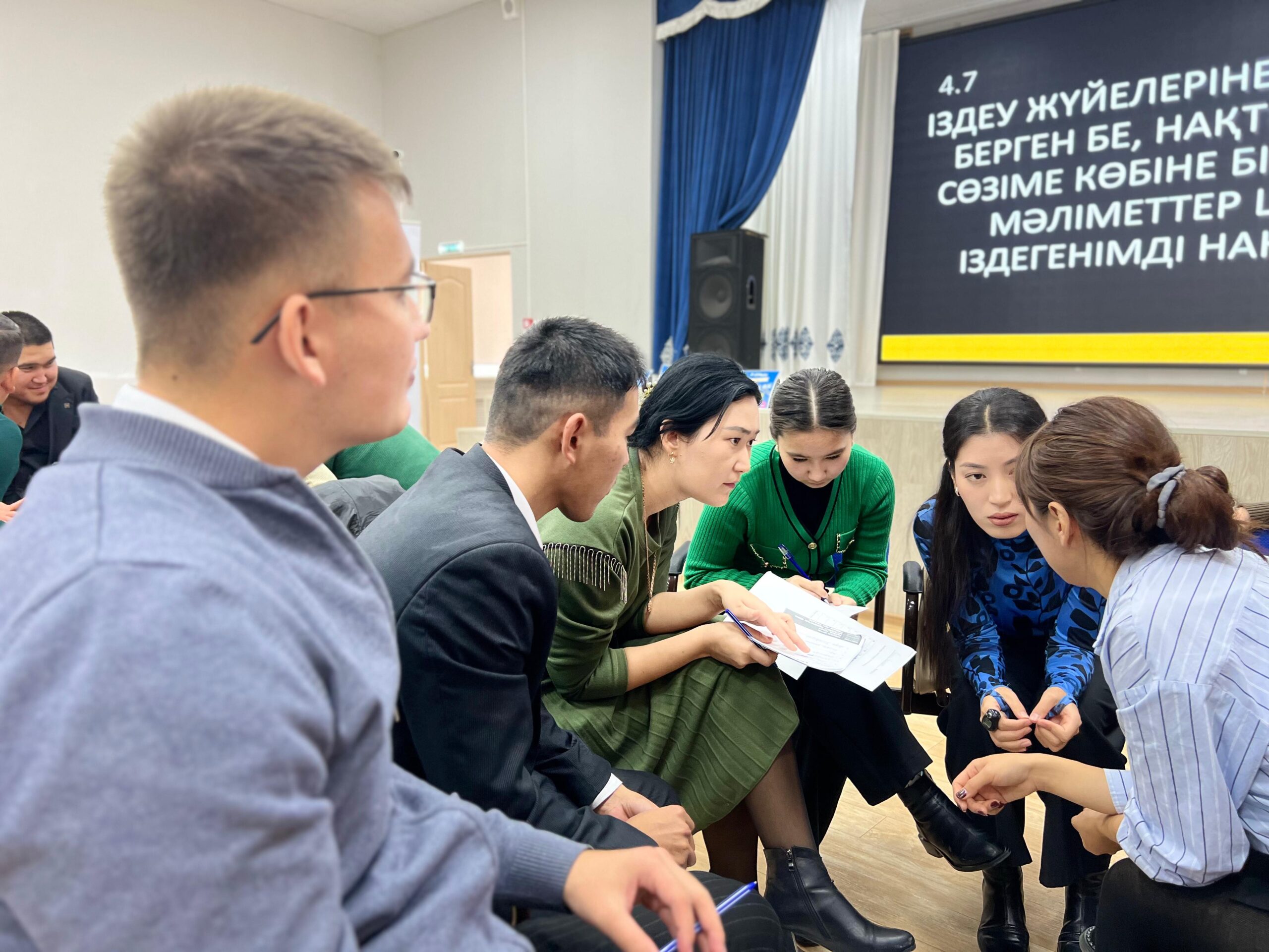 Маңғыстаулық жас мамандар оқытудан кейін зияткерлік ойын ойнады. Бес топқа бөлінген командаларға логикалық сұрақтар, тарих, әдебиет, спорт және тағы басқа да бағыттағы сұрақтар қойылды. Куиз 7 кезеңнен тұрды, әр дұрыс жауапқа 1 ұпайдан берілді.